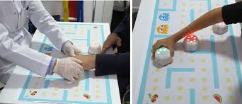Rehabilitation aims to ameliorate deficits in motor control via intensive practice with the affected limb. Current strategies, such as one-on-one therapy done in rehabilitation centers, have limitations such as treatment frequency and intensity, cost and requirement of mobility. Thus, a promising strategy is home-based therapy that includes task specific exercises. However, traditional rehabilitation tasks may frustrate the patient due to their repetitive nature and may result in lack of motivation and poor rehabilitation. In this article, we propose the design and verification of an effective upper extremity rehabilitation game with a tangible robotic platform named Cellulo as a novel solution to these issues. We first describe the process of determining the design rationales to tune speed, accuracy and challenge. Then we detail our iterative participatory design process and test sessions conducted with the help of stroke, brachial plexus and cerebral palsy patients (18 in total) and 7 therapists in 4 different therapy centers. We present the initial quantitative results, which support several aspects of our design rationales and conclude with our future study plans.