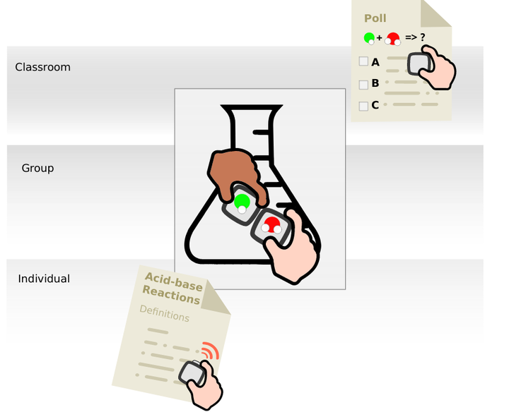 While digital tools are more and more used in classrooms, teachers’ common practice remain to use photocopied documents to share and collect learning exercises from their students. With TIP (Tangible e-Ink Paper) we aim to explore the use of tangible manipulatives to interact with paper sheets and bridge between digital and paper traces of learning tasks. Featuring an e-Ink display, a paper-based localisation system and a wireless connection, TIPs is envisioned to be used as a versatile tool across various curriculum activities. In this paper, we present the design principle of TIPs and a first functional prototype. We conclude by future work in evaluating TIPs as a distributed sensor for teacher in their classroom, including learning scenario examples to illustrate our statements.