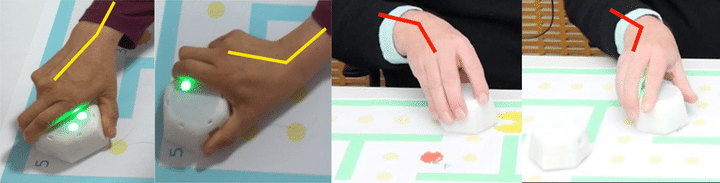 For successful rehabilitation of a patient after a stroke or traumatic brain injury, it is crucial that rehabilitation activities are motivating, provide feedback and have a high rate of repetitions. Advancements in recent technologies provide solutions to address these aspects where needed. Additionally, through the use of gamification, we are able to increase the motivation for participants. However, many of these systems require complex set-ups, which can be a big challenge when conducting rehabilitation in a home-based setting. To address the lack of simple rehabilitation tools for arm function for a home-based application, we previously developed a system, Cellulo for rehabilitation, that is comprised of paper-supported tangible robots that are orchestrated by applications deployed on consumer tablets. These components enable different features that allow for gamification, easy setup, portability, and scalability. To support the configuration of game elements to patients’ level of motor skills and strategies, their motor trajectories need to be classified. In this paper, we investigate the classification of different motor trajectories and how game elements impact these in unimpaired, healthy participants. We show that the manipulation of certain game elements do have an impact on motor trajectories, which might indicate that it is possible to adapt the arm remediation of patients by configuring game elements. These results provide a first step towards providing adaptive rehabilitation based upon patients’ measured trajectories.
